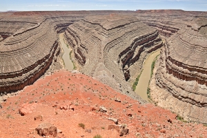 Geologically speaking, this was formed over a period of millions of years, when the surrounding landscape slowly rose in elevation and the river carved “incised meanders”. The river is about a thousand feet below the surrounding plateau.